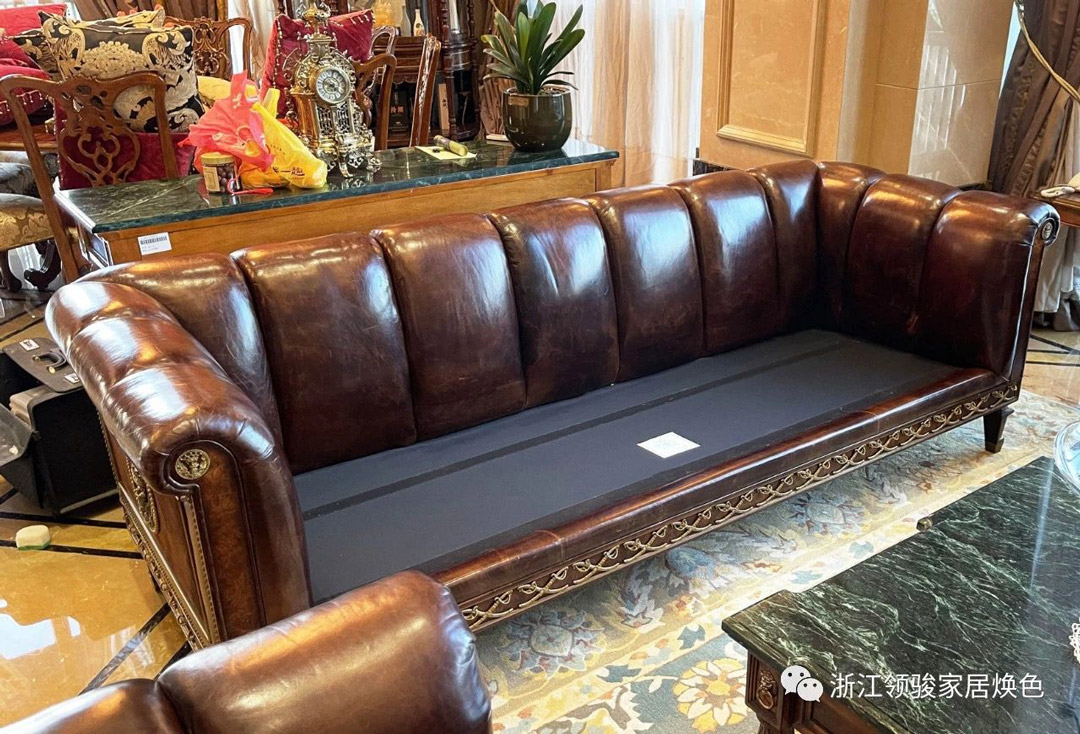 - 客戶家中使用的真皮沙發(fā)長時間缺少保養(yǎng),表面出現(xiàn)掉色、龜裂痕的問題