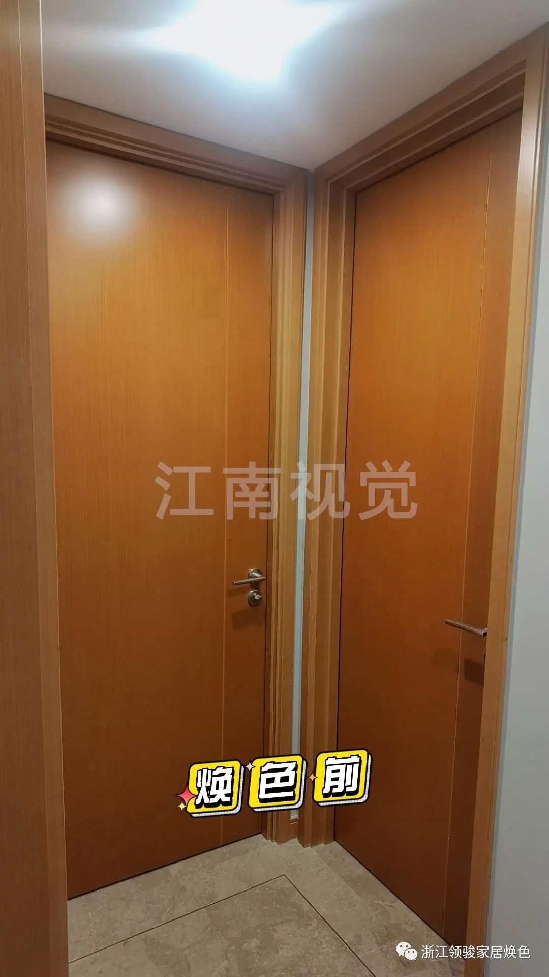 ▼接下來我們們看看下一個,這是客戶家的兩扇室內(nèi)門,暗色調(diào)的,很不喜歡吧?感覺看起來就很臟。別擔心,看我的。